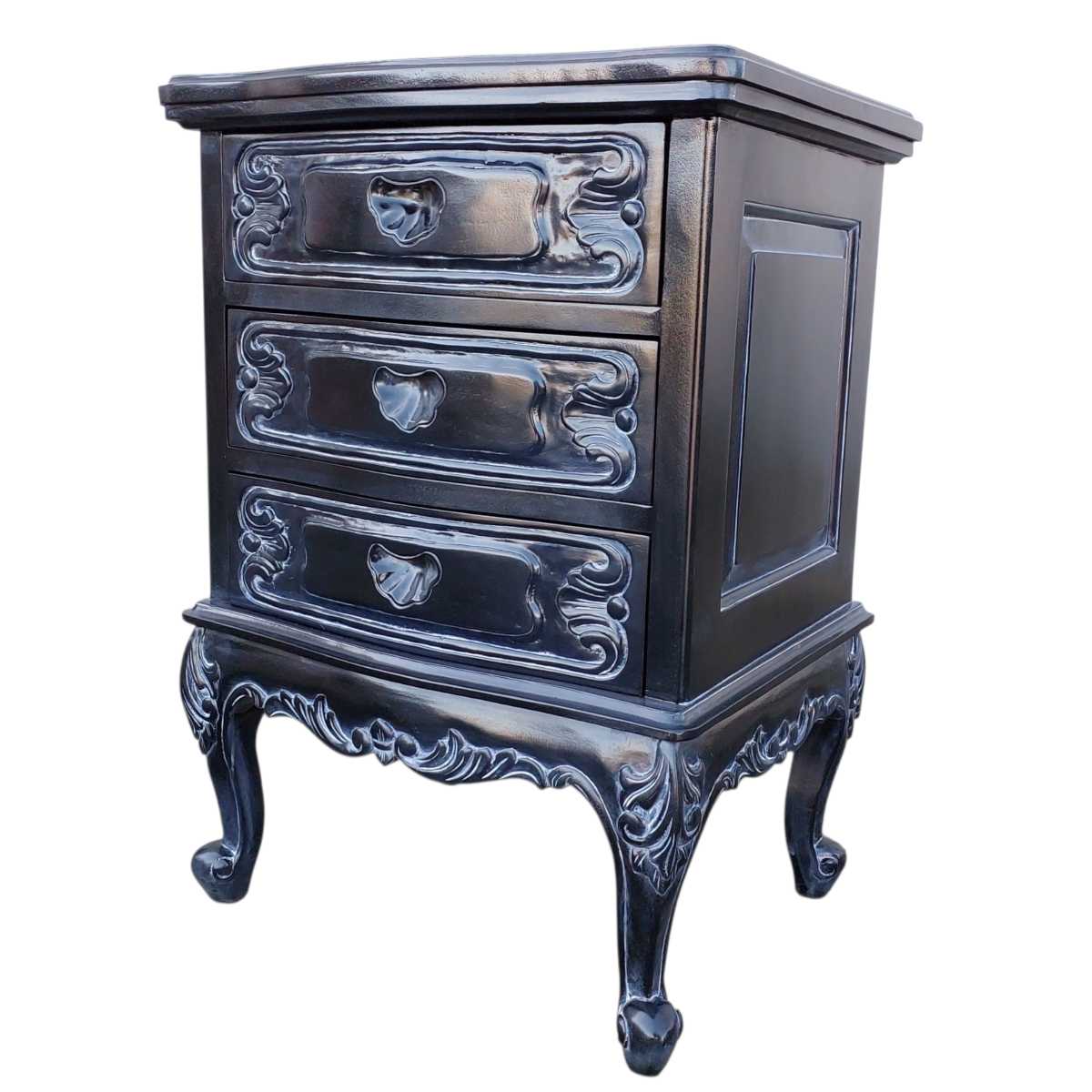 DOMINIQUE MAHOGANY WOOD 3 DRAWERS NIGHTSTAND ☆ BLACK